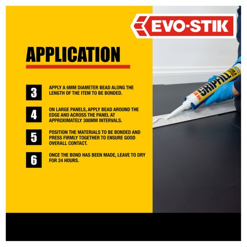 • Evo-Stik Yellow Gripfill Grab Adhesive - Solvent Free - 350ml - White