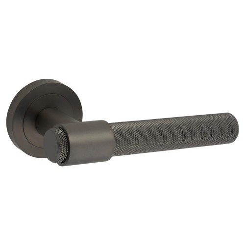 Hampstead Anthracite Grey Knurled Door Handles on Round Rose - Esme Range