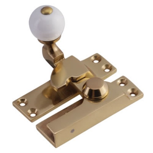 • Hampstead Lancaster Pattern Quadrant Arm Sash Window Fastener - 75 x 27mm - Brass/White