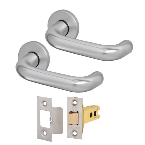 Heavy Duty Latch Door Handle on Rose Fire Door Kit & Dorgard Holder - Push/Pull - Aluminium