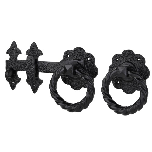 • Heavy Duty Twisted Ring Gate Latch - 230 x 98mm - Black Powder Coated