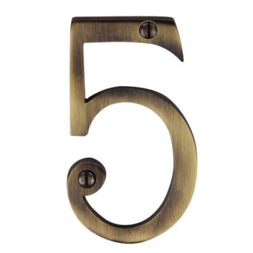 Heritage Brass by M Marcus 76mm Screw Fix Door Numeral - 5 - Antique Brass