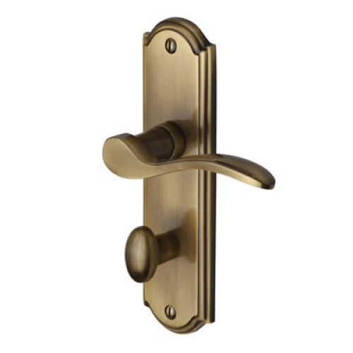 • Heritage Brass by M Marcus Antique Brass Scroll Bathroom Door Handle - Howard Range - 171 x 48mm