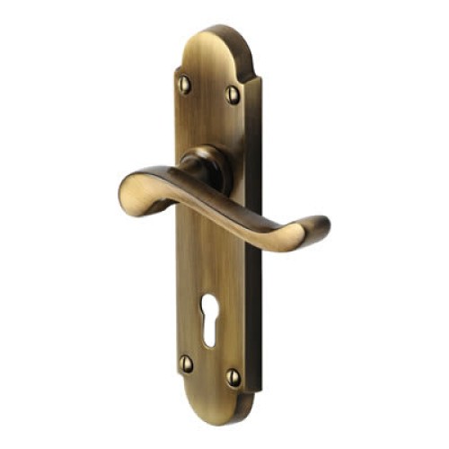 Heritage Brass by M Marcus Antique Brass Scroll Keyhole Lock Door Handle - Savoy Range - 171 x 42mm