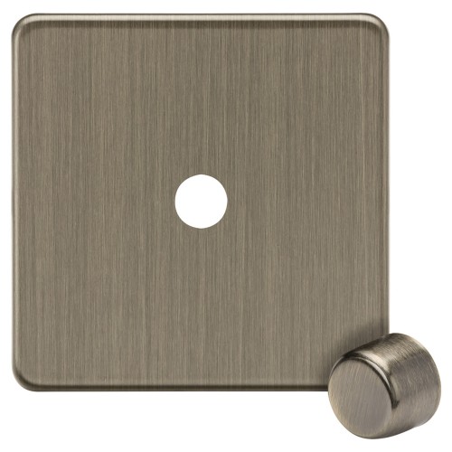 • Knightsbridge 1 Gang Screwless Flat Dimmer Plate with Metal Dimmer Cap - Antique Brass