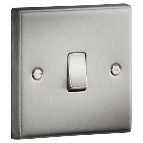 Knightsbridge 10AX 1 Gang 2 Way Square Edge Plate Light Switch - Brushed Chrome