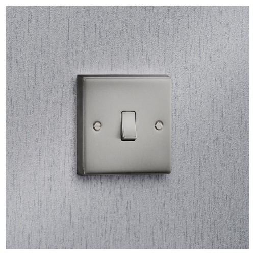 • Knightsbridge 10AX 1 Gang 2 Way Square Edge Plate Light Switch - Brushed Chrome