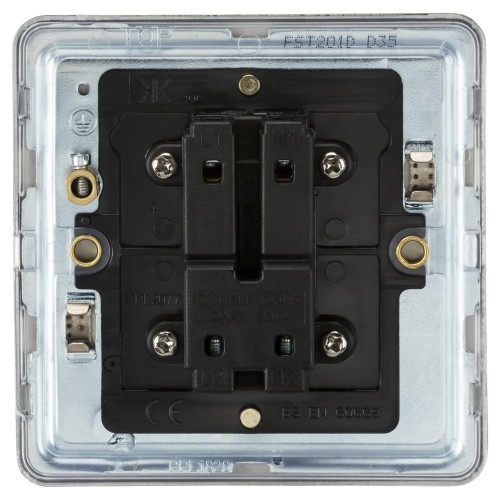 Double pole switch features a screwless flat plate design delivers a seamless finish with no visible fixings, for a smooth decorative touch