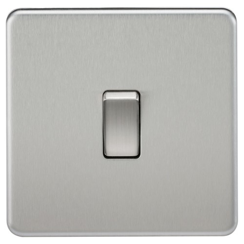 • Knightsbridge 10AX 1 Gang Screwless Flat Plate Double Pole Light Switch - Brushed Chrome