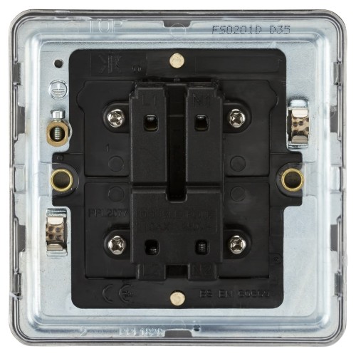 Double pole switch features a screwless flat plate design delivers a seamless finish with no visible fixings, for a smooth decorative touch