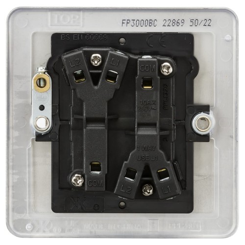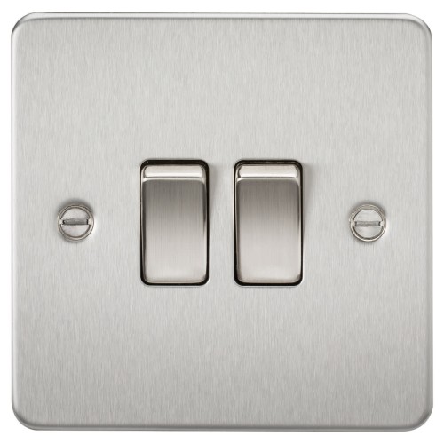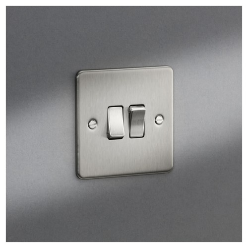 • Knightsbridge 10AX 2 Gang 2 Way Flat Plate Light Switch - Brushed Chrome