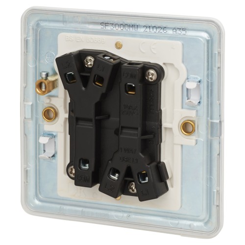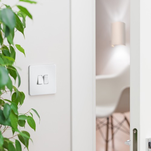 • 2 gang light switch with screwless flat plate design offers a sleek, contemporary look while sitting almost flush to the wall for a smooth, modern finish