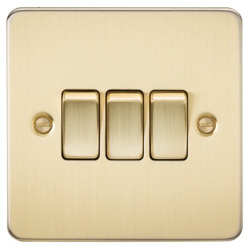 Knightsbridge 10AX 3 Gang 2 Way Flat Plate Light Switch - Brushed Brass
