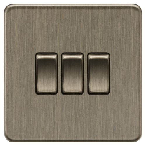 Knightsbridge 10AX 3 Gang 2 Way Screwless Flat Plate Light Switch - Antique Brass