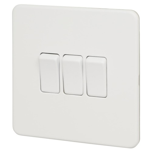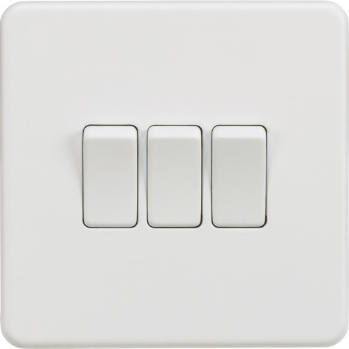 • Knightsbridge 10AX 3 Gang Screwless Flat Plate Light Switch - Matt White