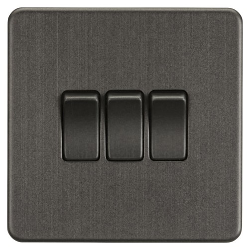 • Knightsbridge 10AX 3 Gang Screwless Flat Plate Light Switch - Smoked Bronze