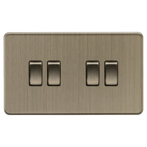 • Knightsbridge 10AX 4 Gang 2 Way Screwless Flat Plate Light Switch - Antique Brass