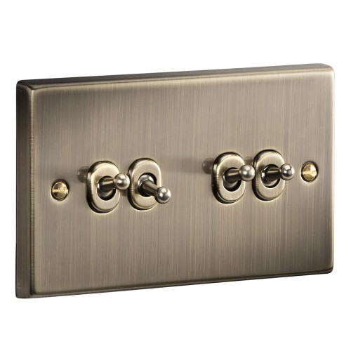 • Knightsbridge 10AX 4 Gang 2 Way Toggle Light Switch - Antique Brass