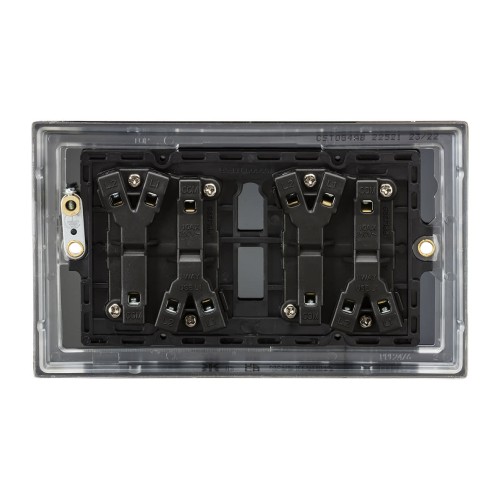 4 gang light switch with square edge design offers a sleek, contemporary look while sitting almost flush to the wall for a smooth, modern finish