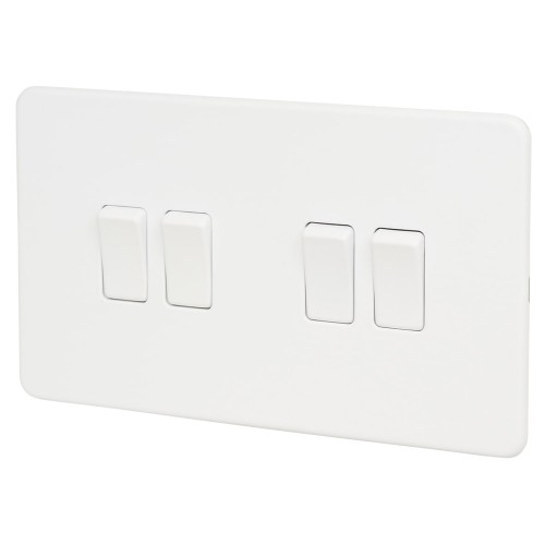 • Knightsbridge 10AX 4 Gang Screwless Flat Plate Light Switch - Matt White