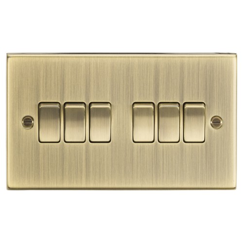 Knightsbridge 10AX 6 Gang 2 Way Square Edge Plate Light Switch - Antique Brass