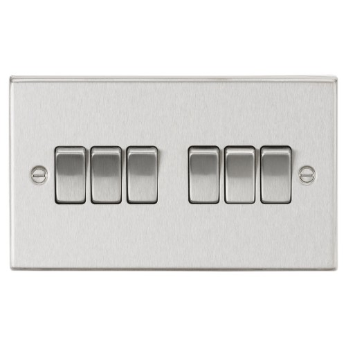 Knightsbridge 10AX 6 Gang 2 Way Square Edge Plate Light Switch - Brushed Chrome
