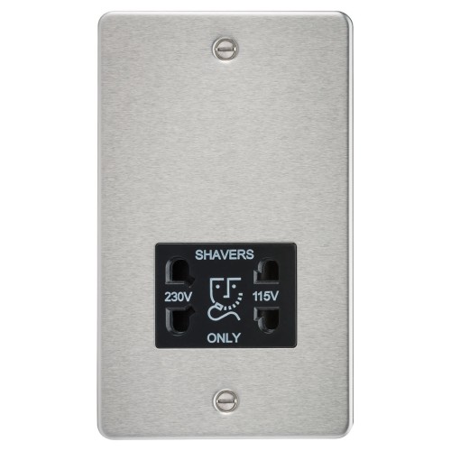 Knightsbridge 115/230V Flat Plate Dual Voltage Shaver Socket - Brushed Chrome with Black Insert