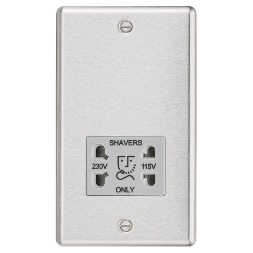 Knightsbridge 115/230V Round Edge Dual Voltage Shaver Socket - Brushed Chrome with Grey Insert