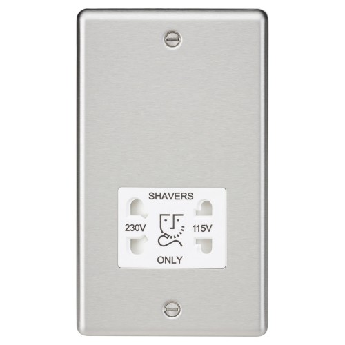 Knightsbridge 115/230V Round Edge Dual Voltage Shaver Socket - Brushed Chrome with White Insert