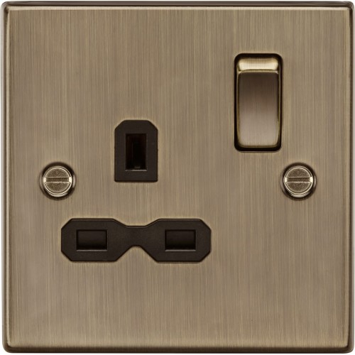 • Knightsbridge 13A 1 Gang Double Pole Switched Socket - Antique Brass with Black Insert