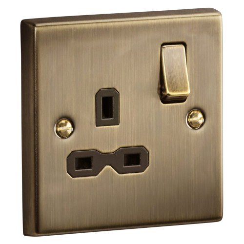 Knightsbridge 13A 1 Gang Double Pole Switched Socket - Antique Brass with Black Insert