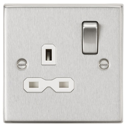 • Knightsbridge 13A 1 Gang Double Pole Switched Socket - Brushed Chrome with White Insert