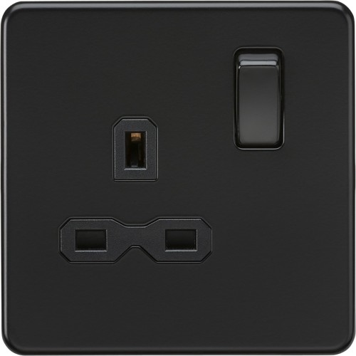• Knightsbridge 13A 1 Gang Screwless Flat Plate DP Switched Socket - Matt Black with Black Insert
