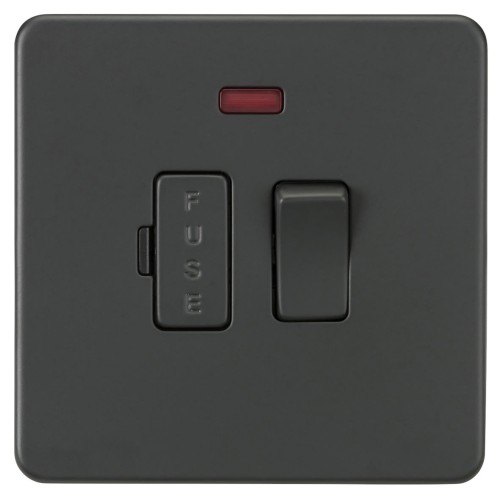 • Knightsbridge 13A 1 Gang Screwless Flat Plate Switched Fused Spur with Neon - Anthracite Grey