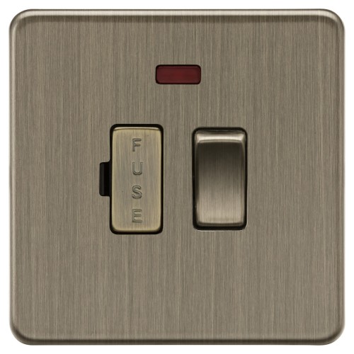 • Knightsbridge 13A 1 Gang Screwless Flat Plate Switched Fused Spur with Neon - Antique Brass