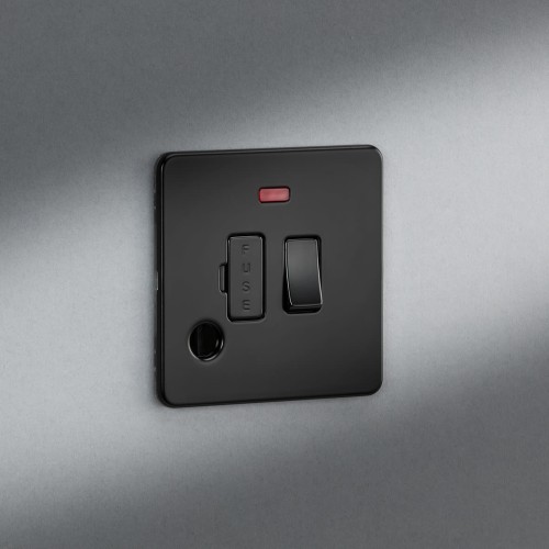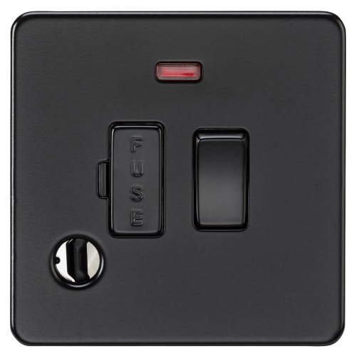 • Knightsbridge 13A 1 Gang Screwless Switched Fused Spur with Neon & Flex Outlet - Matt Black