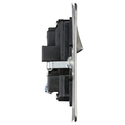 • Switched socket features a flat plate, ultra low-profile design that sits almost flush to the wall for a smooth decorative touch
