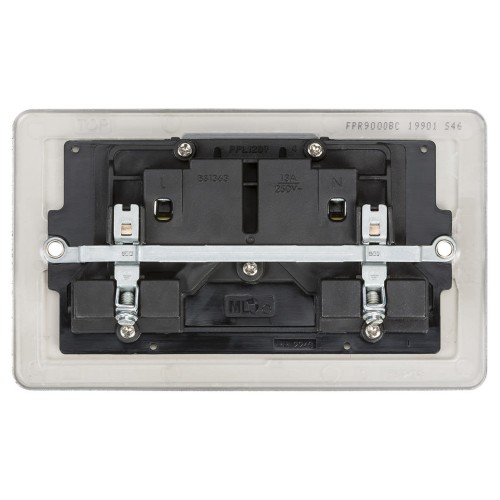 Knightsbridge 13A 2 Gang DP Switched Socket with Twin Earths - Brushed Chrome with Black Insert