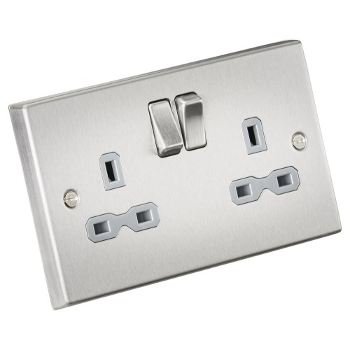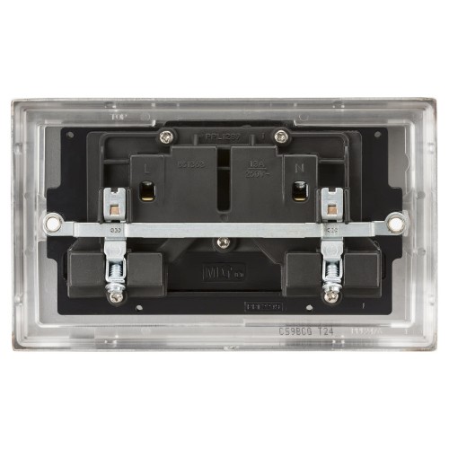 Knightsbridge 13A 2 Gang DP Switched Socket with Twin Earths - Brushed Chrome with Black Insert