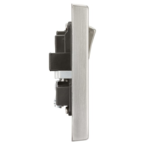 Switched socket features a square edge design with defined edges for a neat appearance