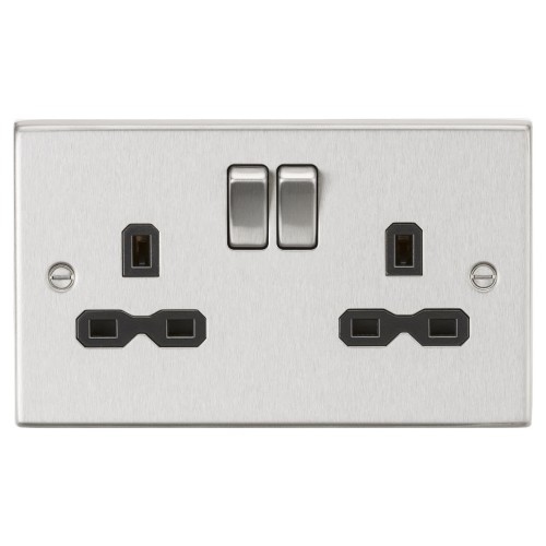 • Knightsbridge 13A 2 Gang DP Switched Socket with Twin Earths - Brushed Chrome with Black Insert