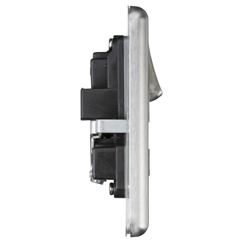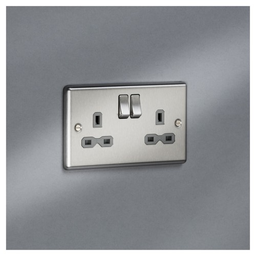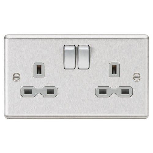 • Knightsbridge 13A 2 Gang DP Switched Socket with Twin Earths - Brushed Chrome with Grey Insert