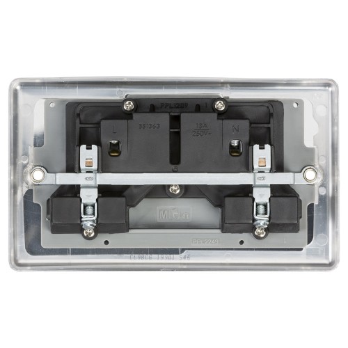Knightsbridge 13A 2 Gang DP Switched Socket with Twin Earths - Brushed Chrome with Grey Insert