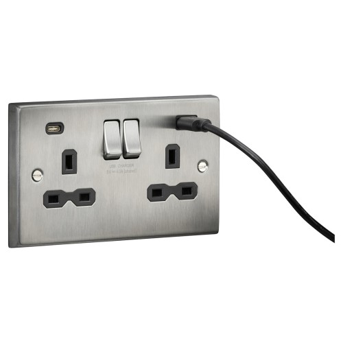 • USB socket boasts brushed chrome finish with a black insert that creates a premium decorative look