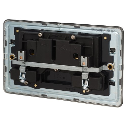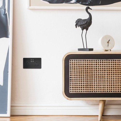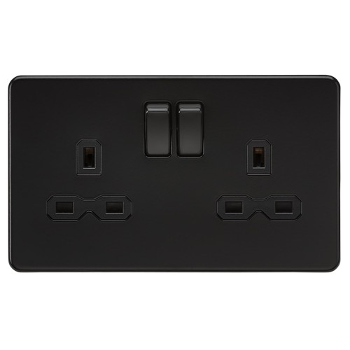 • Knightsbridge 13A 2 Gang Screwless Flat Plate Switched DP Socket - Matt Black with Black Insert