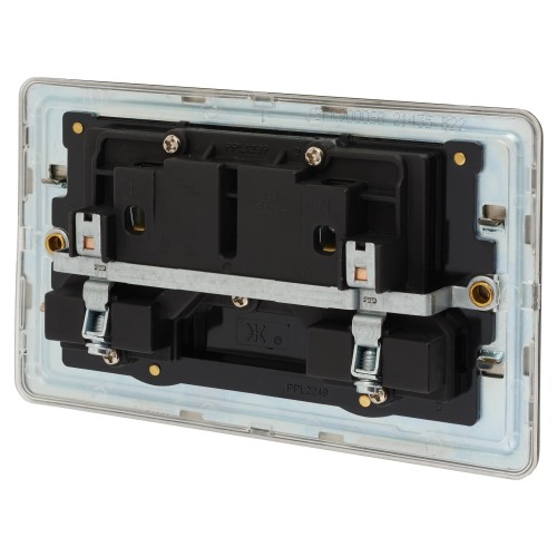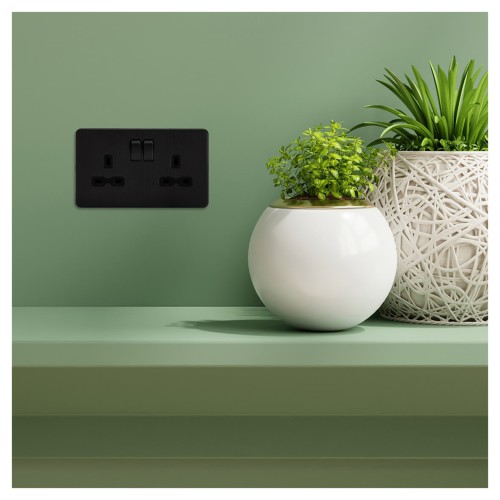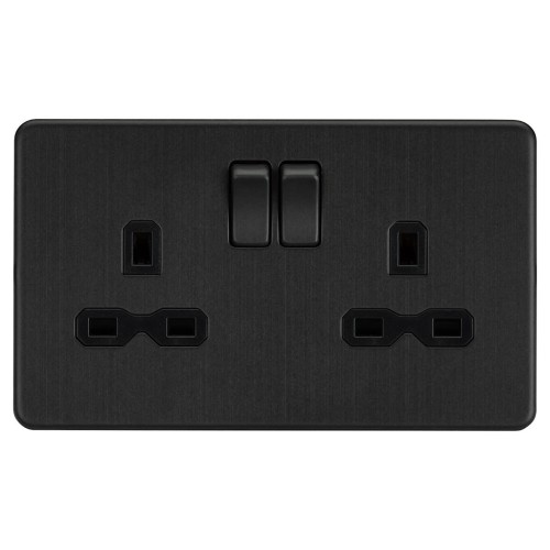 • Knightsbridge 13A 2 Gang Screwless Flat Plate Switched DP Socket - Smoked Bronze/Black Inserts