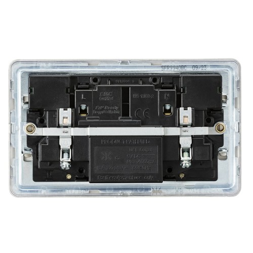 • 13A 2 gang screwless USB socket combines power and style, ideal for charging smartphones, tablets, and other USB-powered devices around the home or office