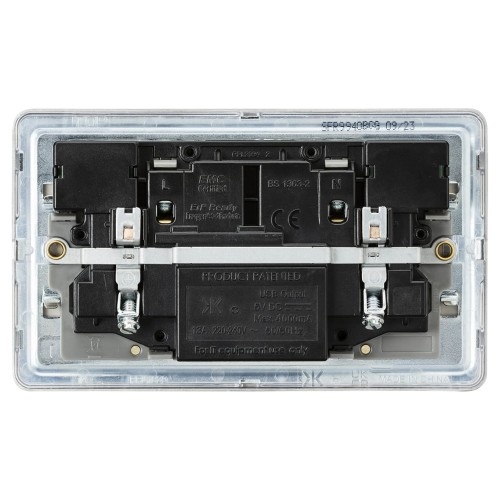 • 13A 2 gang screwless USB socket combines power and style, ideal for charging smartphones, tablets, and other USB-powered devices around the home or office