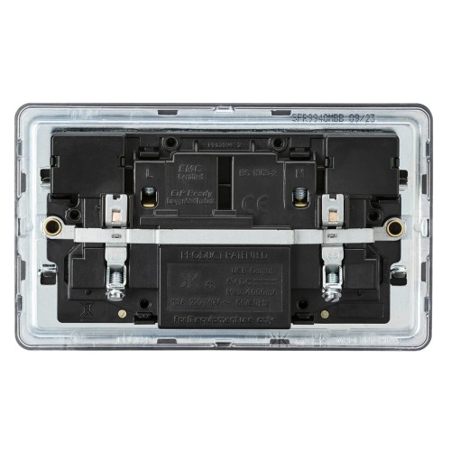 • 13A 2 gang screwless USB socket combines power and style, ideal for charging smartphones, tablets, and other USB-powered devices around the home or office