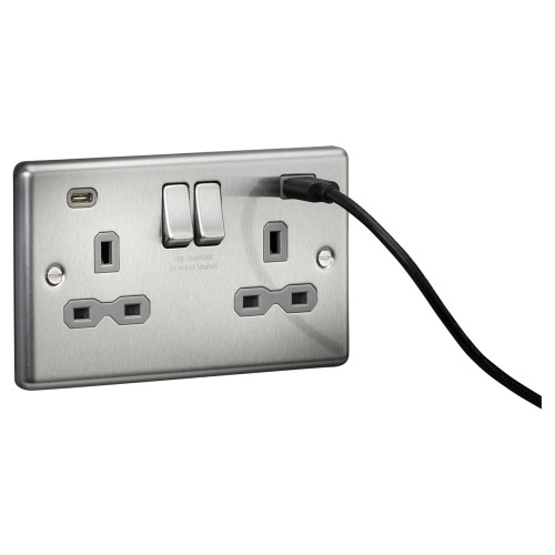 • USB socket boasts brushed chrome finish with a grey insert that creates a premium decorative look